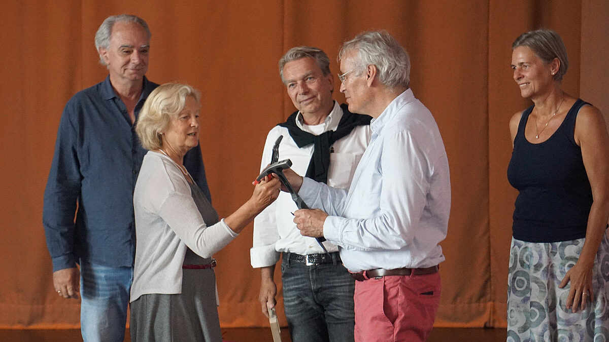 Verabschiedung des Vorstandsmitglieds Martin Schlüter | Foto: M.Niedermann Wunderbares Sommerwetter begrüßte die etwa 100 Teilnehmer der Mitgliederversammlung in Kassel am Johannitag. Der erste Teil begann mit einem von Angelika Sandmann moderierten freien Gespräch, in dem es hauptsächlich um die Frage der zunehmenden Überalterung in der Anthroposophischen Gesellschaft ging. Diese Frage beschäftigt die Mitglieder in den vergangenen Jahren zunehmend. Das Gespräch war geprägt von einem wirklichen Interesse mit gleichzeitiger Ratlosigkeit. Durch einige Beiträge wurde deutlich, dass die jüngere Generation mit ganz anderen Anliegen und Ansätzen in der Welt steht. Nicht wöchentliche Zweigveranstaltungen am jeweiligen Wohnort treffen ihre Bedürfnisse. Vielmehr scheinen sie erst einmal den Blick in die Welt zu richten und daraus ihre Anliegen für lokale Begegnungen und Projekte entwickeln zu wollen. Es wurde deutlich, dass diese Frage, will man zu einer Antwort kommen, nach weiteren Wahrnehmungen und Gesprächen verlangt. (Anmerkung: Eine Woche nach der Mitgliederversammlung sollte ein Begegnungstag zwischen jungen Menschen und den Zweigvertretern aus dem Arbeitszentrum Stuttgart der Anthroposophischen Gesellschaft stattfinden. Dieses Treffen musste mangels Teilnahme seitens der älteren Gesellschaftsmitglieder abgesagt werden. Anmeldungen von jüngeren Menschen gab es einige.)