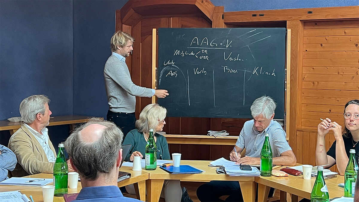 Ausführlich wurden Einblicke in die Arbeitsweise und die Arbeitsschritte des Konvents gegeben. Blickleitende Kernpunkte für die Ausarbeitung, denkbare Varianten und vor allem die ideellen Grundlagen, die es in die Zukunft zu führen gilt, wurden angeschaut und bearbeitet. In Arbeitsgruppen wurden diese Kernpunkte vertieft, die eingebrachten Ideen bewegt und aufgenommen. Im Plenum wurde die Spannbreite von Ausrichtungsmöglichkeiten verhandelt und bereits auf die kommende Jahresversammlung geschaut.